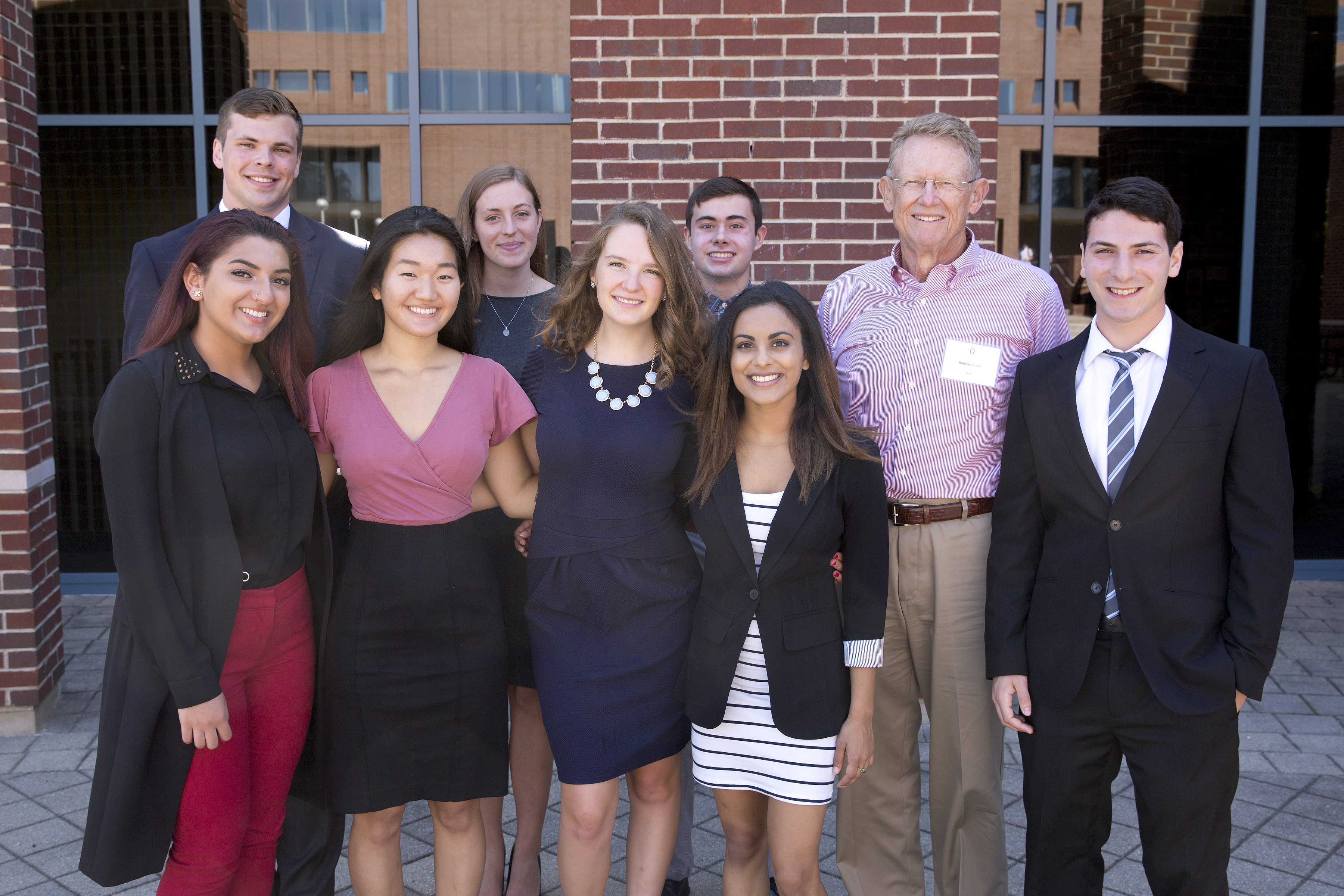 2017 Holster Scholars with Robert Holster (’68) on September 25, 2017. (Bri Diaz/UConn Photo)