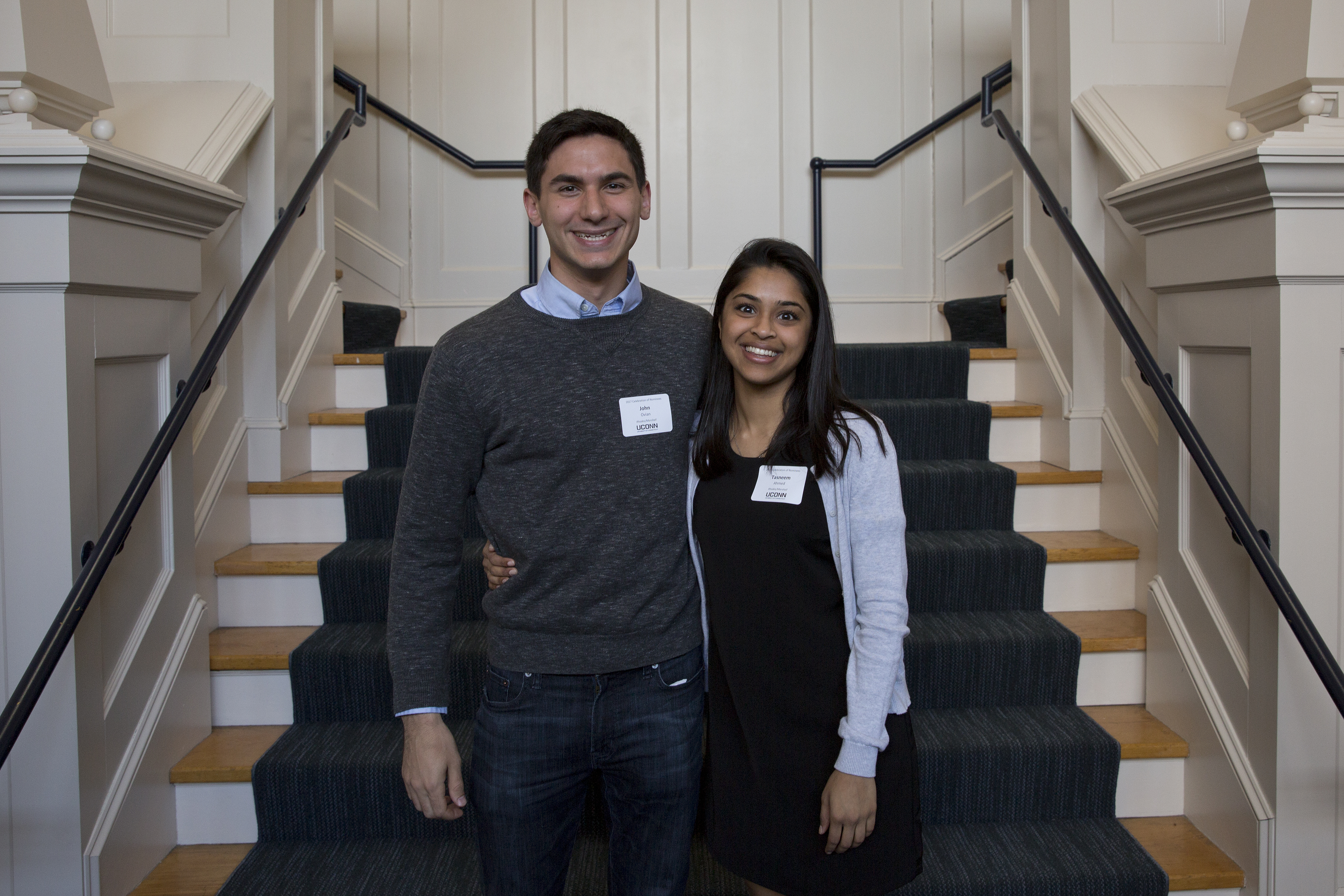 2017 Marshall Scholarship nominees John Ovian and Tasneem Ahmed. John Bear, Jr. and Owen Hart not pictured. UConn Office of National Scholarships and Fellowships 2017 Celebration of Nominees Breakfast on April 19, 2017. (Bri Diaz/UConn Photo)